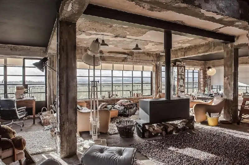 Han equipado la propiedad con 76 ventanas de acero Crittal que le permiten tener una vista espectacular del desierto desde todos los ángulos. Han modernizado esta construcción culturalmente significativa mientras mantienen vivo el espíritu de ella. La creación de un área cálida para las visitas de invierno, la pareja ha situado una aga en el centro de la dramática cocina con luz natural que es un gran foco de la construcción y Tiene una escalera para un movimiento fácil . Los ladrillos expuestos se presentan en habitaciones con radiadores de hierro fundido para los meses de invierno.