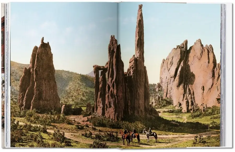 Las imágenes utilizan la tecnología de entonces ponedor para mostrar al tío Sam en todo su tono caleidoscópico. De repente, los colores del continente estaban disponibles para que todos lo vean, describe el libro. Desde los ricos Ochres y Browns del Gran Cañón hasta el deslumbramiento de Atlantic City, estos lugares ahora eran un deleite visual no solo para testigos oculares sino también para estadounidenses de todas partes.