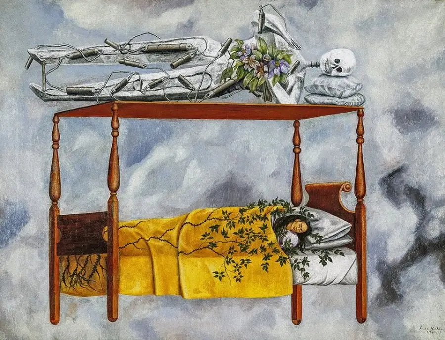 Esta búsqueda escapista de encontrar una verdad más profunda en el arte fue absolutamente vital para la problemática Frida Kahlo. Le permitió elevarse por encima del dolor que vivió después de un trágico accidente cuando era joven. El arte la ayudó a superar esto, la propia Kahlo concluyó: al final del día, podemos soportar mucho más de lo que creemos que podemos. Ella vivió con sufrimiento y lucha y expresó que su trabajo lleva consigo el mensaje de dolor, sin embargo, pudo llegar más allá de eso, encontrando tanto la salvación en su arte como una forma de preservar un estado de exultación alegre, postulante poéticamente: pinto flores para que no mueran.