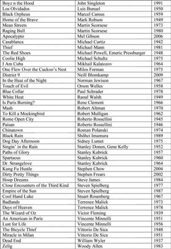 Sin embargo, la lista, que está compuesta por 95 películas en total, inicialmente fue solo 87 nombres en su primer lanzamiento. Sin embargo, después de que Internet señaló que Lee no había podido incluir a una sola cineasta femenina, Lee ajustó su lista.