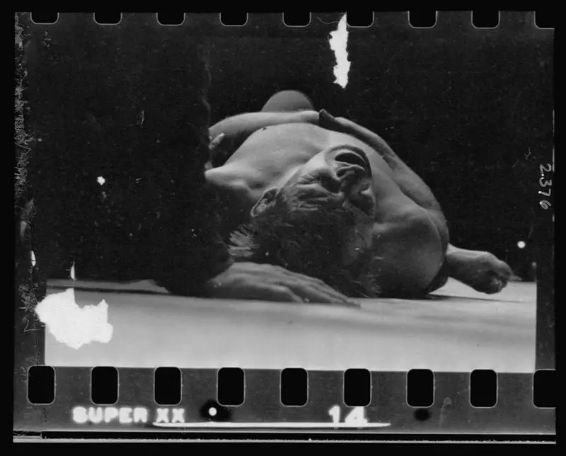 Esto probablemente explica cómo Stanley Kubrick terminó en una pelea de lucha Mirar revista. Con una rica estética monocromática, las fotografías de Kubrick en la noche provocan la alegría de la multitud y la emoción de la pelea misma. Reuel Golden, quien coeditó un libro publicado recientemente sobre la fotografía de Stanley Kubrick, señaló lo siguiente sobre el director: también hay una sensación en la que Kubrick está muy en la escena, pero no lo ves. Eso es algo que es muy primordial para un director de cine. Que sientas su presencia pero en realidad no lo ves.